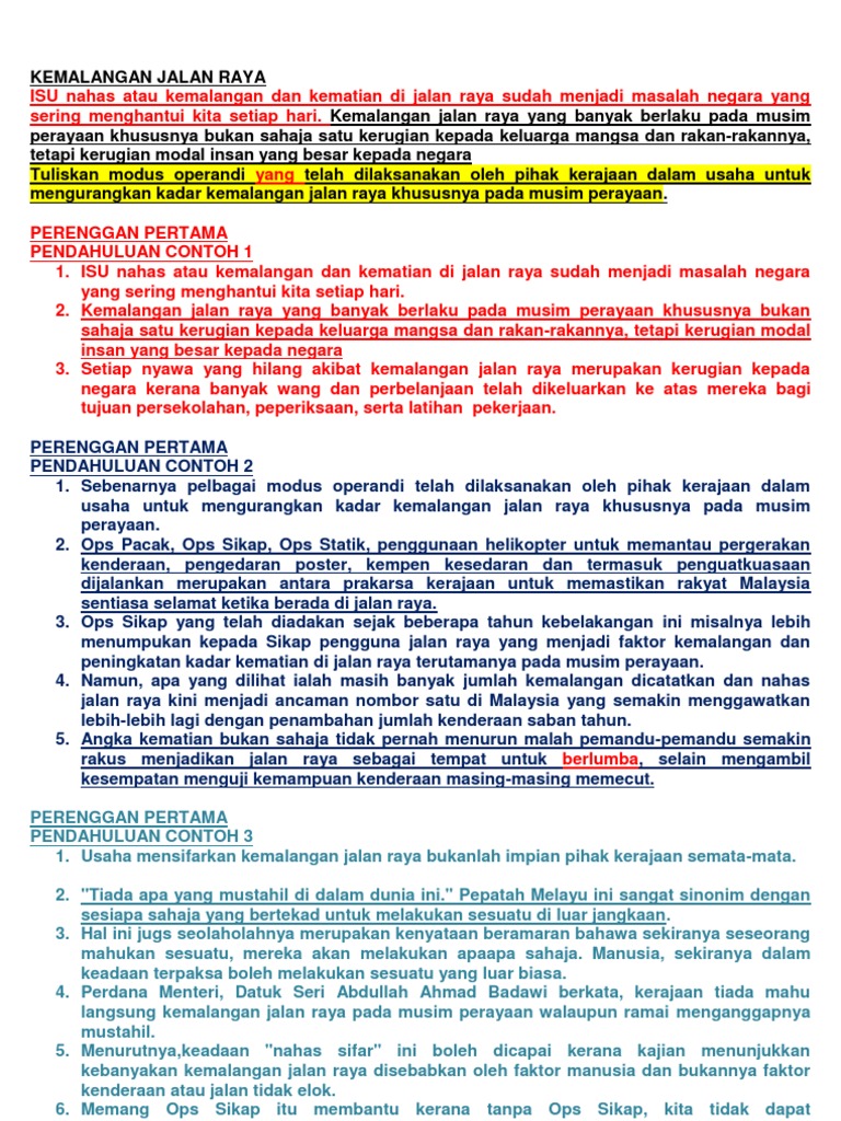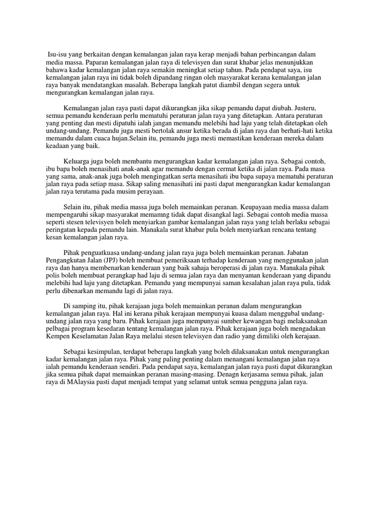 Karangan Isu Kemalangan Jalan Raya Pdf